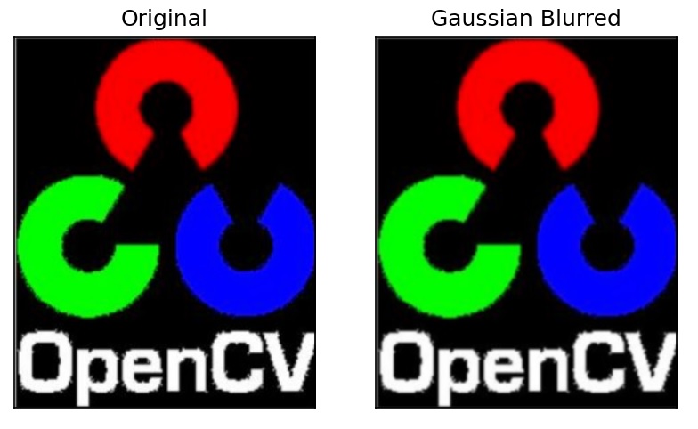 Thay vì bộ lọc hộp, nhân gaussian được sử dụng thông qua hàm cv2.GaussianBlur(). Cần chỉ định chiều rộng và chiều cao của ma trận nhân là số dương lẻ, chỉ định độ lệch chuẩn theo hướng X và Y, tương ứng là sigmaX và sigmaY. Nếu chỉ sigmaX được chỉ định, sigmaY được coi như sigmaX. Nếu cả hai được cho dưới dạng số 0, chúng được tính từ kích thước ma trận nhân. Tính năng làm mờ Gaussian có hiệu quả cao trong việc loại bỏ nhiễu gaussian khỏi hình ảnh. Đoạn code trên có thể được sửa đổi để làm mờ Gaussian: